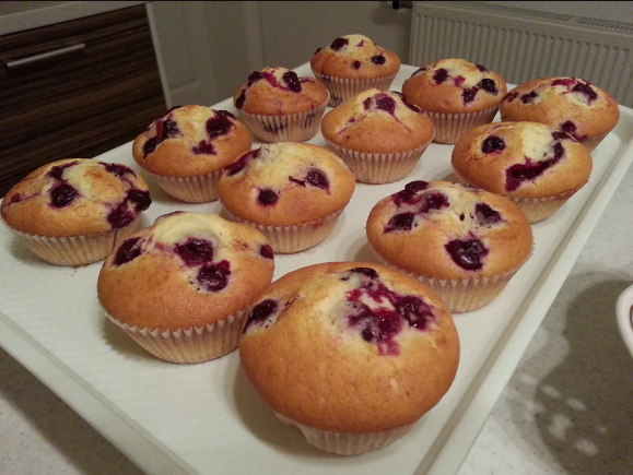 Ovaj recept daje oko 12 muffina standardne veličine. Uživajte u slatkim muffinima sa sočnim komadićima višanja!