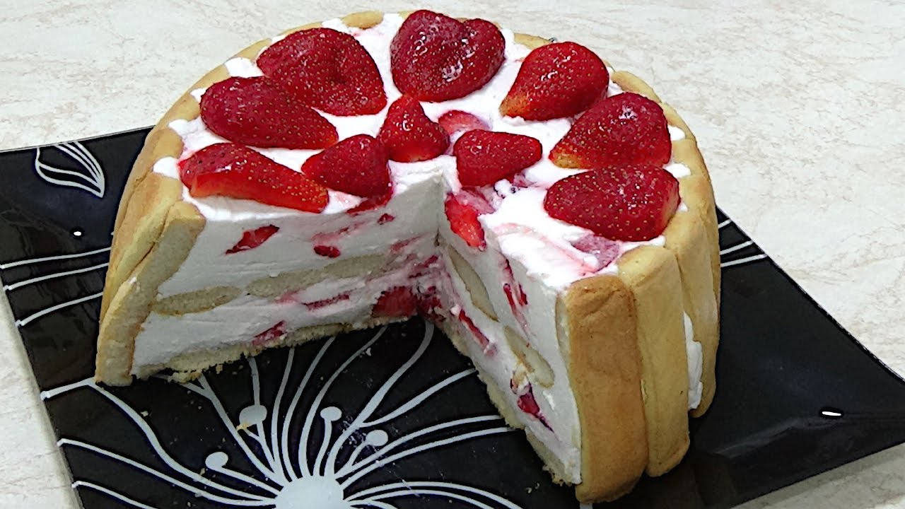 Postepeno je umijesajte u pripremljenu kremu. Onda po kremu poredajte red jagoda narezanih na kriske pa po jagodama namocene piskote.