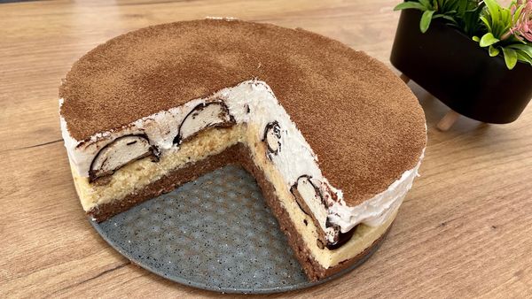 Takodjer za fil ponovite postupak samo ovaj put koristite puding od vanile i bijelu cokoladu a umjesto keksa dodajte kokos.