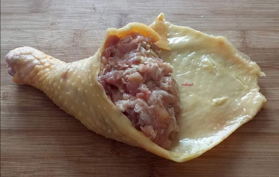 Prvo uzmite batak zajedno sa karabatkom pa donji dio batka nozem zasijecite kozicu skroz okolo kosti.