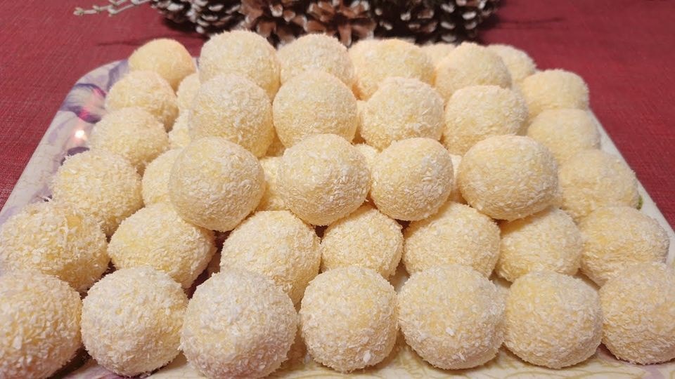 Kada se smjesa ohladi dodajte joj izradjeni maslac i dobro promijesajte pa dodajte kokos. Lagano mokrim rukama pravite male kuglice u sredinu svake stavite przeni ljesnjak pa uvaljajte u kokos.
