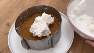 1. Na pripremljenu podlogu od keksa ravnomjerno rasporedite kremu.