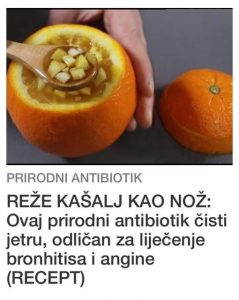 Jedna od prirodnih i kućnih varijanti koja pomaže kod bronhitisa, kašlja i koji ublažava simptome i olakšva disanje jeste kombinacija meda, bijelog luka, narandže i limuna. Ovaj priprvak je prije svega poznat pi tome što je jako dobar za imunitet i respiratorni sistem.