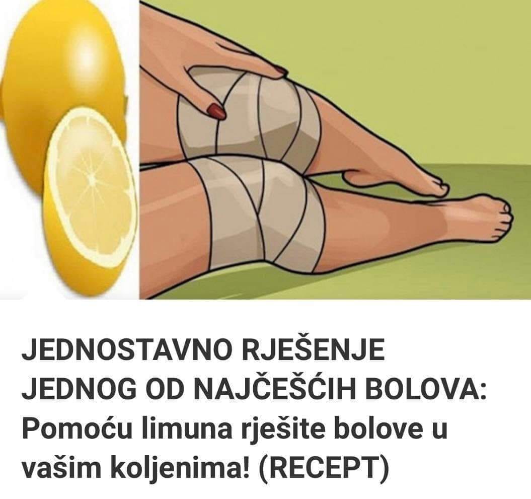 Ko ima problema sa bolovim u koljenu zna koliku muku upravo ti bolovi mogu unijet u naš život. Bolovi u koljenima mogu se pojaviti iz različitih faktora a ti faktori su ulazak u godine, sportske povrede, lomovi ali i bolest kostiju koja se naziva artritis. Ukoliko patite od ove neugodnosti pokušajte sa ovim prirodnim receptom otklanjanja bolova u oljenima. Ovaj način otklanjanja bolova je uz pomoć Limuna. pokušajte i vidjet ćete koje lakšanje ćete imati nakon tretmana rješavanja bolova sa limunom te ete samim tim poboljšati kvalitetu svoh života.