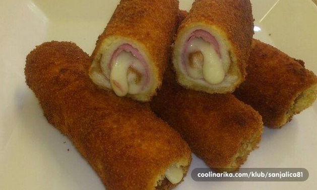 Prvo kriske tosta rastanjite oklagijom. Onda na svaki tost stavite po krisku sunke i sira a onda pazljivo urolajte. Umjesto sunke mozete koristiti salamu ili slaninu sta zelite.