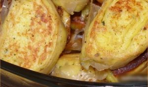 Svaka šnita se prži na vrelom maslacu, sa obe strane, dok ne dobije zlatno-smeđu koricu. Ovaj korak je ključan jer prženjem do izražaja dolaze mirisi parmezana i začina, dok kore postaju hrskave spolja, a unutrašnjost ostaje mekana i sočna.