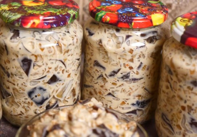 Pripremljenu smjesu spiajte u sterilisane tegle.
