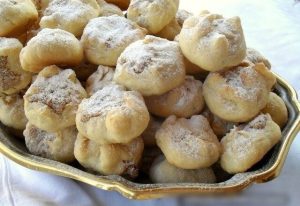 Paralelno s tim, priprema se i fil. Uzmite dva belanceta i umutite ih dok ne postanu čvrsta pena, zatim dodajte kristal šećer i vanilin šećer, pa nastavite mućenje dok se ne dobije sjajna i gusta smesa. Na kraju se pažljivo umešaju mleveni orašasti plodovi – može se koristiti ono što imate pri ruci, bilo da su to orasi, lešnici ili bademi. Bitno je da fil bude dovoljno čvrst da ne iscuri tokom pečenja, ali da se lepo rastopi kada se kolačići zagrizu.