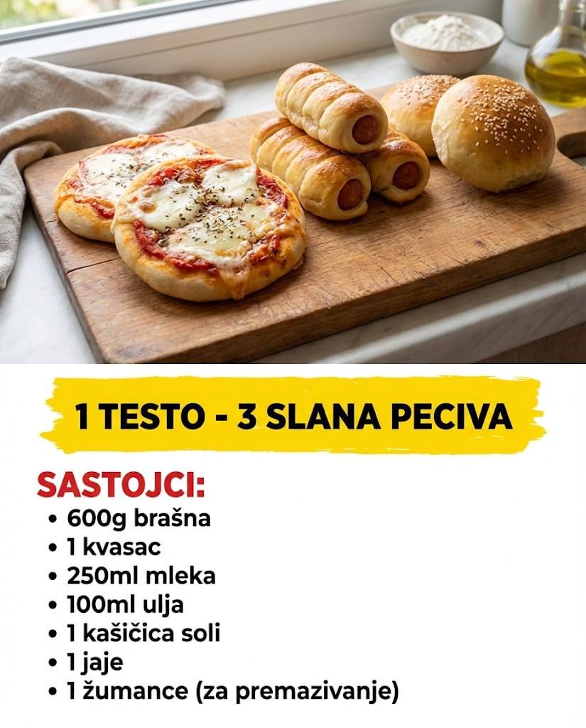 Od tijesta napravljenog na ovaj način možete peći mini pizze, kiflice sa hrenovkama, kiflice sa sirom, pogačice sa susamom. Tijesto se jako lijepo oblikuje bez problema a prilikom pečenja lijepo nadolazi. Ukus je veoma fantastičan pa tako da bilo šta što vam padne napamet moete iskoriti ovaj recept za tijesto. Ovo tijesto možete ostaviti i u frižideru da stoji par dana i koristi za razne vrste peciva.