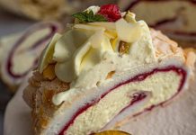 Prvo umutite slatku pavlaku sa mascarpone sirom onda isjeckajte jagode i dodajte u smjesu pa promijesajte.