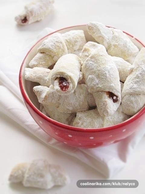 Prvo zamijesite tijesto od gore svih navedenih sastojaka i stavite malo u hladnjak da se stisne. Razvaljajte i pravite kiflice sa nadjevom po zelji.