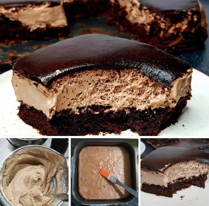 Pleh dim. 24×24 cm nauljite i pospite sa malo brasna i izrucite smjesu za biskvit.