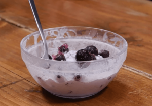 Nakon što ste izmiksali vrhnje u dobli čvrstu kremu, dodajte džem od borovnica. Umjesto da ga samo umutite mikserom, koristite špatulu i laganim pokretima odozdo prema gore umiješajte džem. Na taj način se čuvaju mehurići vazduha u kremi koji doprinose laganoj i penastoj strukturi sladoleda. Miješajte dovoljno da se džem ravnomjerno rasporedi, ali ostavite poneki gusti trag ili “vrtlog” borovnice koji će dati dodatni vizuelni i ukusni užitak.
