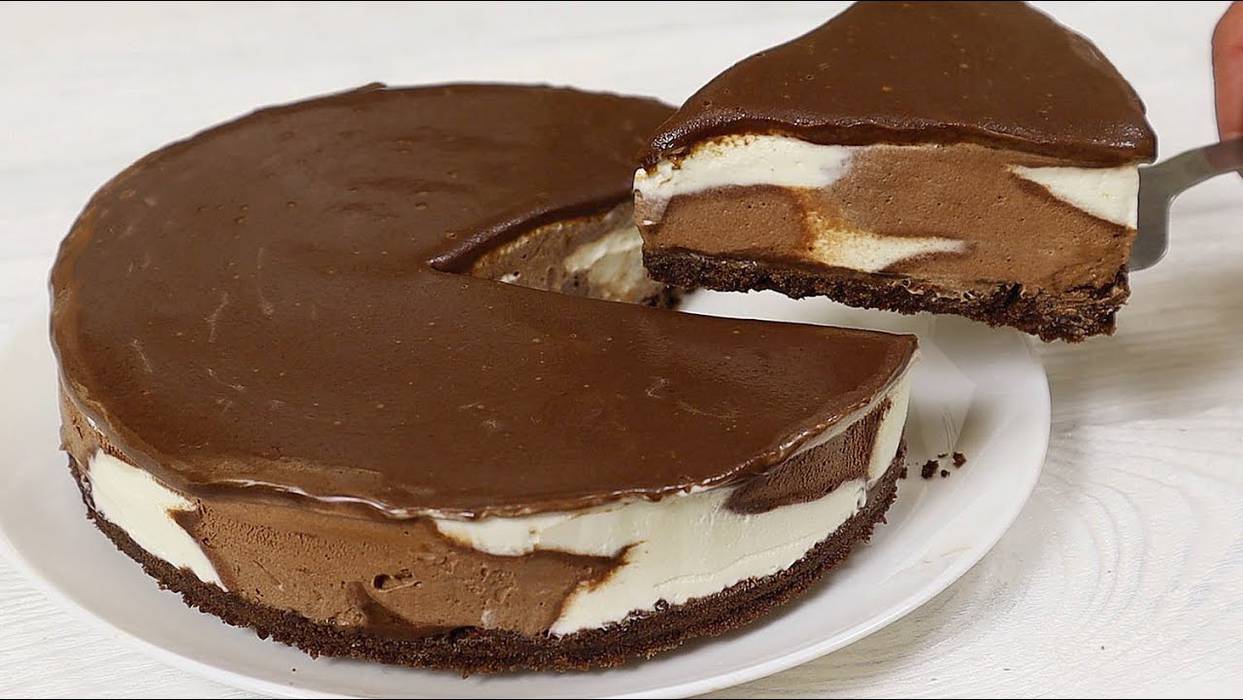 Onda u mikrovalnoj otopite crnu cokoladu sa 100 grama vrhnja. U drugoj posudi izmiksajte ostatak vrhnja sa vanilijom pa dodajte kondenzovano mlijeko. Odvojite kremu na dva dijela pa u jedan dio umijesajte kakao.