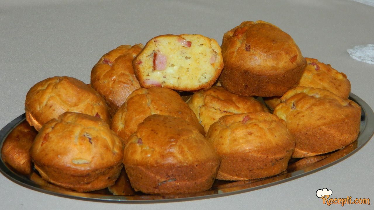 Fetom izmrvite pa dodajte u tijesto i dobro promijesajte. Istresite u kalupe za muffine i pecite u vec zagrijanoj renri na 200 stupnjeva oko 20 minuta.