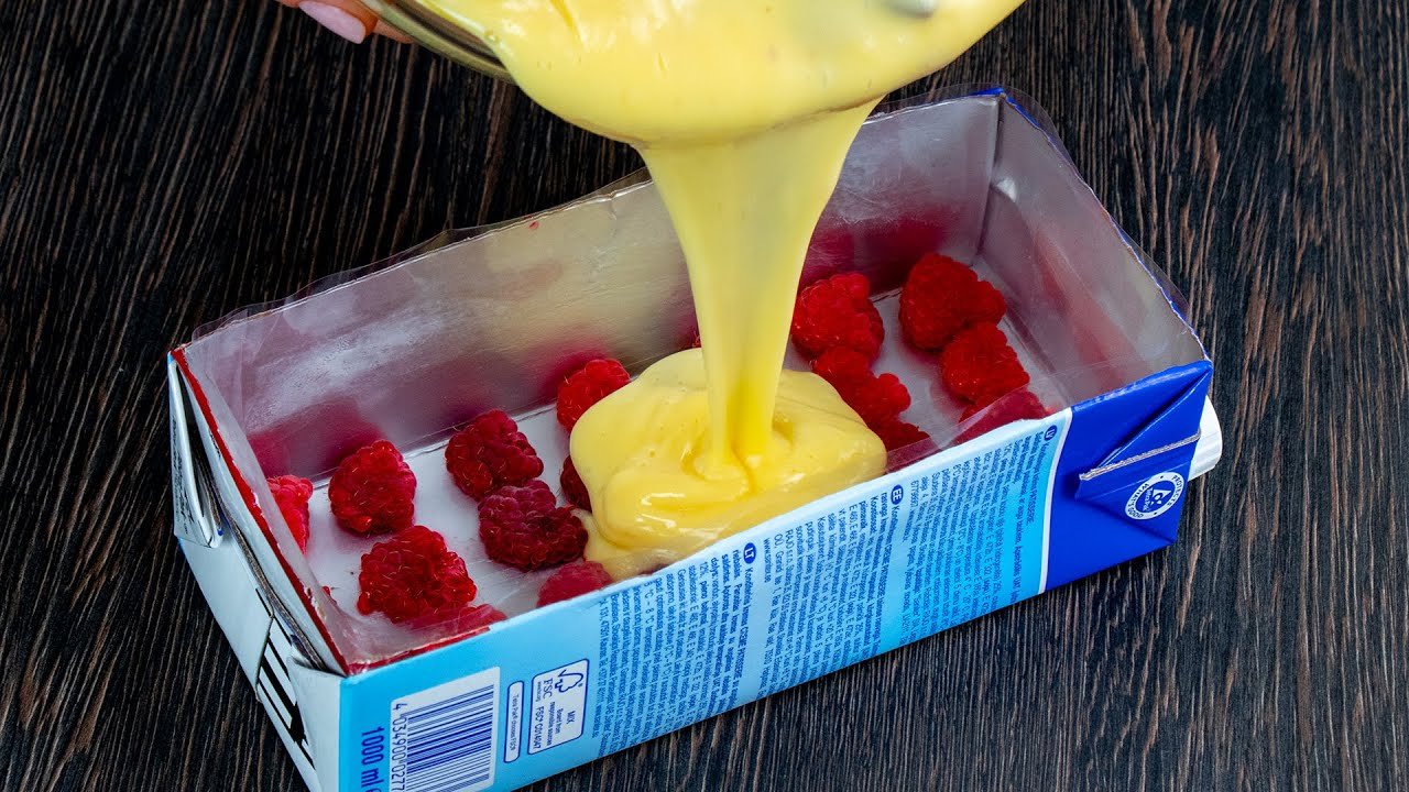 Oblozite ga providnom folijom i na dno poredajte 100 grama malina. Vocke malo pritsnite stranicom koju ste odrezali sa tetrapaka.