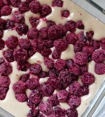 Kada izvadite pleh iz rerne, ravnomerno rasporedite voćnu mešavinu preko blago zapečenog testa. Potom pažljivo prelijte ostatak smese preko voća, trudeći se da sve bude ravnomerno pokriveno.