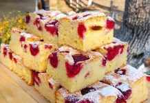Na donju koru biskvita sipajte krem pa stavite drugu koru. Pospite sa secerom u prahu.