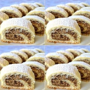 Kada se kolač ohladi, pospite ga šećerom u prahu. Ovaj jednostavan završni dodir ne samo da mu daje privlačan izgled, već i blagu slatkoću koja savršeno upotpunjuje orašasti ukus nadjeva.