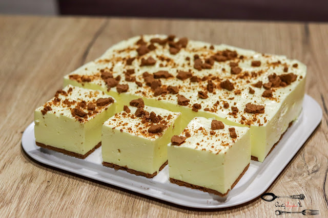 Na dno stavite keks pa fil od sira,poravnajte. Po vrhu pospite zdrobljenim keksom i stavite tortu u hladnjak 2-3 sata.