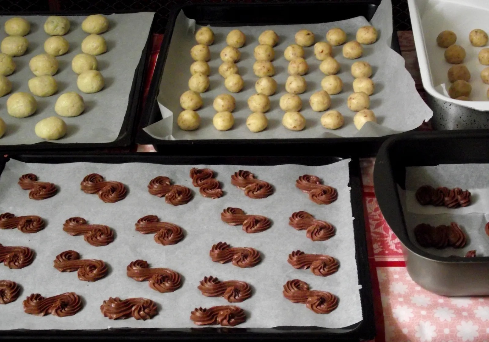 Pecite ih u zagrijanoj rerni oko 12 – 15 minuta, a po potrebi i duže – ovisno o obliku i količini istisnutog tijesta za svaki keks.