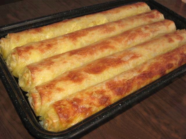 Na trecu koru stavite fil od sira. Ivice kora savijte da fil ne bi curio, pa sve savijte u rolnu. Stavite u podmazan pleh i pecite 35-40 minuta na temp. od 220 stupnjeva da pita porumeni.