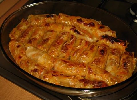 Bolje su kada su maje tako da ja listove sijecem na manje dijelove i stavljam po jednu zlicu fila. Na sarme stavljam 2-3 lovorova lista i preko sarmica stavljam cijele listove kupusa tako da sarmice ostanu socnije.