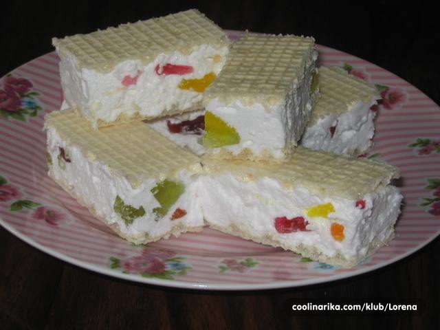 U posudu stavite mlijeko u prahu,dodajte vruc skuhan sirup muteci mikserom. Dobro umutite, prohladite, dodajte ssjeckane zele bombone.