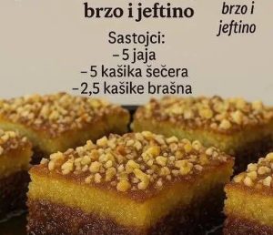 Dobro umutite secer i jaja dok ne dobijete pjenastu smjesu. Ovaj korak je vrlo bitan jer unosi vazduh u smesu, što će pomoći da kora bude mekana, ali i dovoljno čvrsta da izdrži sirup koji će se kasnije dodavati. Poslije toga polako umijesajte brasno i griz vodeci racuna da se smjesa ne spljosti. Dodaju se orasi i čokolada, koji daju bogatstvo ukusa i punu aromu.