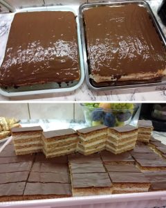 Završni, ali izuzetno važan korak jeste odmaranje kolača. Iako može biti primamljivo odmah ga poslužiti, preporučuje se da odstoji najmanje 12 sati. Tokom tog vremena kore će upiti vlagu iz kreme i džema, omekšati i postati savršeno sočne.