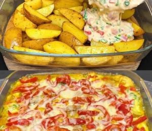 Sljedeći sloj čine svježe cherry rajčice. Narežite ih na sitne kockice i rasporedite preko kremaste smjese. One će tijekom dodatnog pečenja lagano omekšati i pustiti sokove, čime će jelo dobiti dodatnu sočnost. Na samom kraju dodajte mozzarellu – možete je naribati ili narezati na tanke ploške, ovisno o željenom izgledu. Sir rasporedite ravnomjerno kako bi se tijekom pečenja lijepo otopio i stvorio primamljivu, zlatnu koricu.