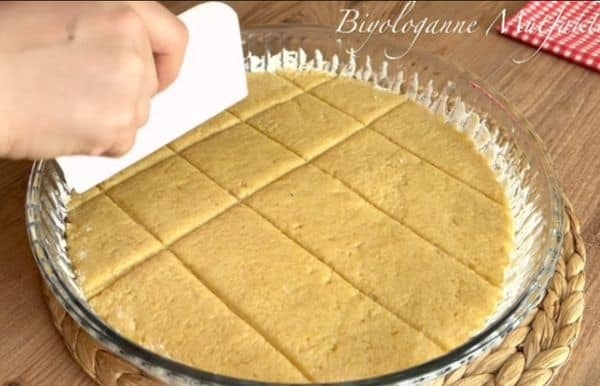 Za tijesto u dubokoj postui umutite kiselo mlijeko i secer pa dodajte griz,prasak za pecivo i po zelji strugane korice od limuna, pomorandze ili vanile.