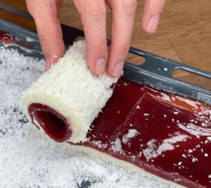 U ovom koraku spajaju se sve prethodno pripremljene komponente. Kokosova smjesa se pažljivo razmazuje u ravnomjernom sloju na ravnu podlogu, najbolje na papirom obložen pleh ili ravnu radnu površinu. Kada se postigne ujednačen sloj, preko nje se pažljivo nanosi fil od višanja, takođe ujednačeno, kako bi svaka rolnica imala optimalan odnos sastojaka. Zatim se sve pažljivo urola u čvrst cilindar, vodeći računa da smjesa ostane kompaktna. Ovaj valjak se potom siječe na jednake dijelove, stvarajući elegantne rolnice.
