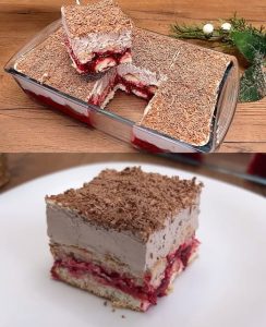 Sledeći korak je sastavljanje deserta, koje se bazira na slaganju slojeva, slično kao kod klasičnog tiramisua. Korišćenje piškota (poznatih i kao Savoie keksi) doprinosi laganoj, ali strukturiranoj osnovi. Postupak izgleda ovako: