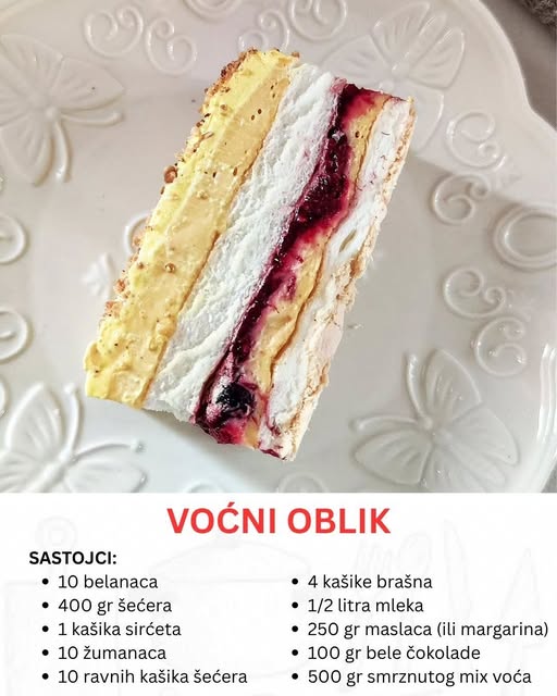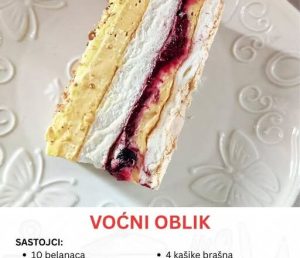 Na pocetku pripreme jako vazbo je razumjeti da osnova ovog kolaca je njegova posebna kora. Ona nije klasična biskvitna podloga, nego podsjeca na čvrstu penu, nalik puslici, koja nakon pečenja ostaje hrskava spolja, a blago mekana iznutra. Upravo ta struktura daje desertu prepoznatljiv karakter. Za pripremu kore potrebna su vam tri sastojka ali u preciznim količinama: