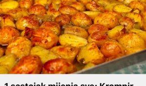 Prvo ogulite krompir pa nasijecite na komade srednje velicine nije potrebno da komadi budu preveliki jer se u tom slučaju može desiti da se ne ispeku ravnomerno.