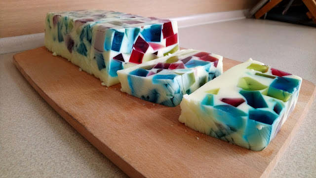 U posebnoj posudi umutite pavlaku dok ne postane cvrsta. Onda postepeno sipajte tecni ohladjeni providni zele. Izvadite zele u bojama iz hladnjaka i isijecite ih na kockice. Stavite u kremastu smjesu i lagano izmijesajte zlicom.